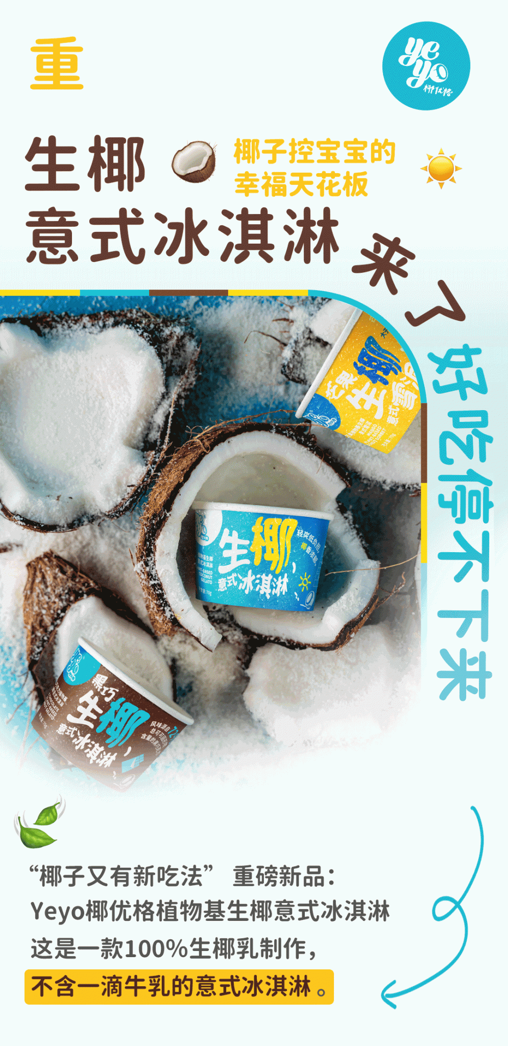 品牌和产品新闻“Yeyo椰优格”推出植物基生椰意式冰淇淋 3 年 ago add comment share分享:Yeyo椰优格推出100%植物基冰激凌,有三个口味:原味、巧克力、芒果雪泥。并已上线淘宝,详情请看下面介绍: 分享: