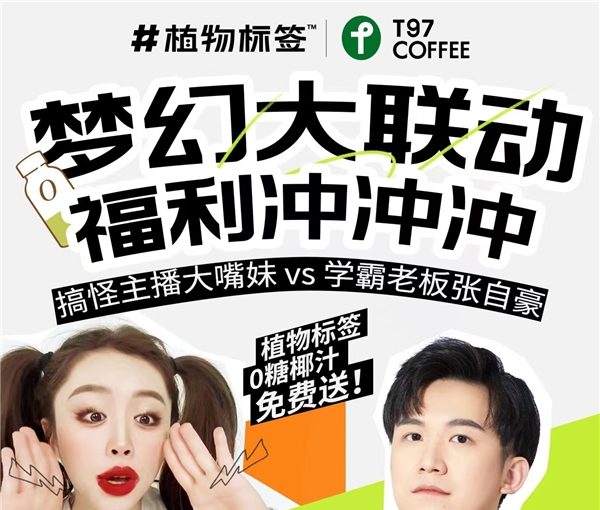 值得一提的是,两位大咖在T97直播间的合体亮相也是两个年轻品牌的首次碰撞。一个是在近期凭借rap直播和产品口感火速出圈的年轻咖啡品牌,一个是迅速实现从0到1快速增长的植物营养品牌,此次联合直播,也为两个品牌后续的进一步合作奠定了基础,从直播间的流量碰撞到后续产品上的合作可能,健康美味的植物基饮品遇上提神醒脑的香浓咖啡,将会共同创造出1+1>2的品牌宣传效应与品牌价值。