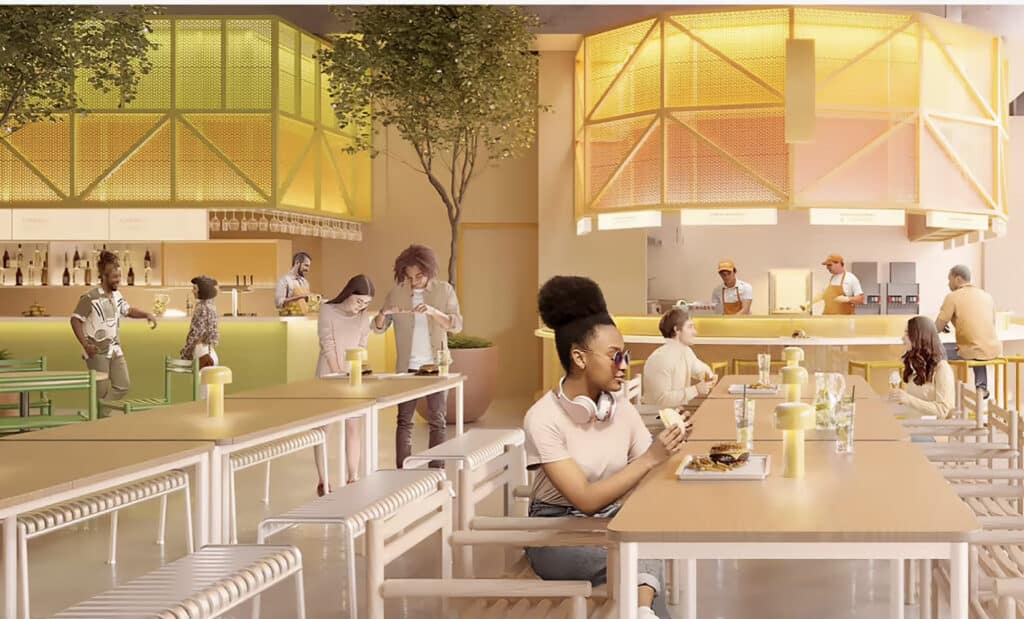 “我们希望它的内容远远超过菜单上的内容——对传统美食大厅进行现代和原创的改造;为当地社区提供聚会场所,同时享用美味佳肴并以更具包容性和可持续性的方式进行社交,” Nielsen 说。