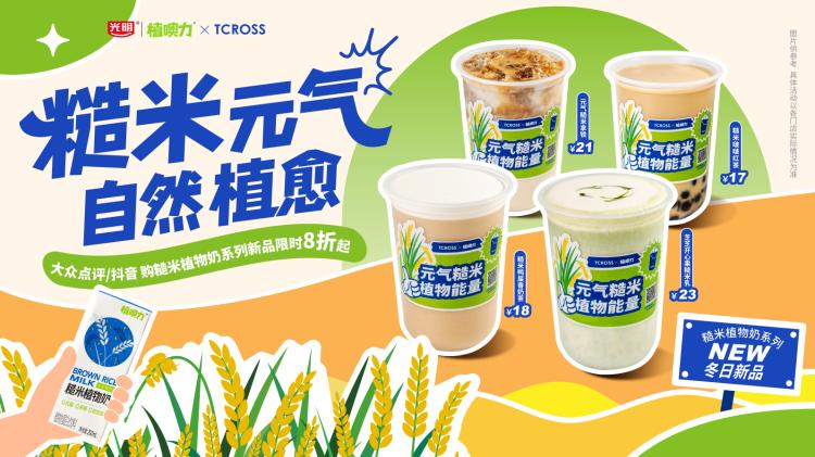 当元气糙米迸发植物能量,当多元蛋白植物基饮品巧妙碰撞新派时髦奶茶,本次联名收获元气满满效果。TCROSS交茶点擅长将传统与现代元素结合创新产品口味,从首次与光明乳业合作的冰砖口味爆款产品,到此次联名推出的全新糙米植物饮品,总能给消费者带来惊喜和新体验。