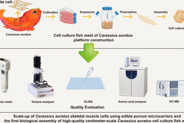近日,中国工程院院士、中国海洋大学教授薛长湖团队首次成功制备了厘米级细胞培养鱼肉,相关研究性论文发表在国际食品Top期刊《农业与食品化学杂志》。