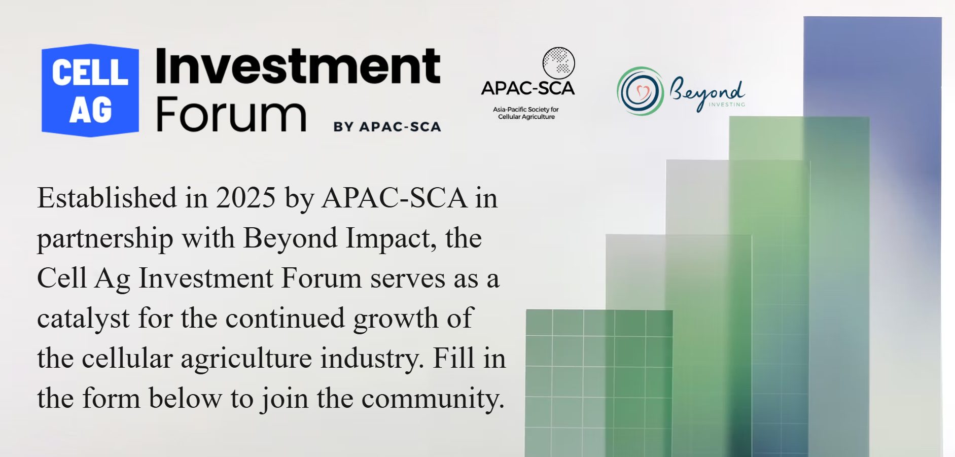 亚太细胞农业协会(APAC-SCA)与Beyond Impact VC联合推出”细胞农业投资论坛”,这一全新平台旨在连接投资者与细胞农业初创企业。该论坛为投资人提供了发掘并参与该领域新兴企业的重要窗口。