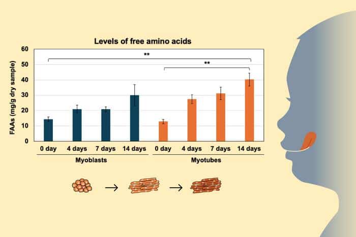 为了研究这一点,该团队在营养液中培养源自牛组织的肌肉细胞,使其分化并形成类似于传统肉类的结构。他们对部分样本进行了熟成处理,另一些则没有,并使用液相色谱法测量了游离氨基酸的水平。