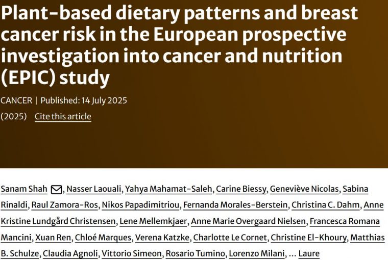 在一项新的研究中,国际癌症研究机构 (IARC) 及其合作机构的科学家调查了欧洲癌症与营养前瞻性调查 (EPIC) 研究中坚持植物性饮食与乳腺癌风险之间的关联。研究结果发表在《欧洲流行病学杂志》上。