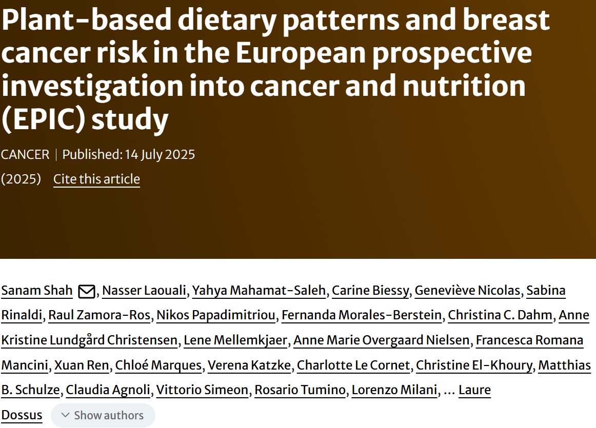 总体而言,尽管仍需进一步研究在其他人群中验证这些发现,但这些结果强调了植物性饮食,尤其是健康的植物性饮食,在预防乳腺癌方面的潜在作用。这些发现对所有乳腺癌亚型都具有重要意义,并强调了植物性食物的质量和维持健康体重的重要性。