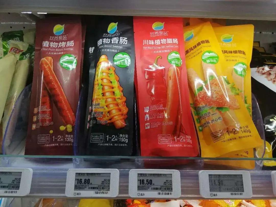 目前除了能在某宝上网购齐善的植物肉产品,盒马,沃尔玛、永辉等商超渠道也能看到它的身影。