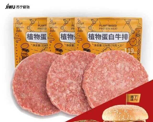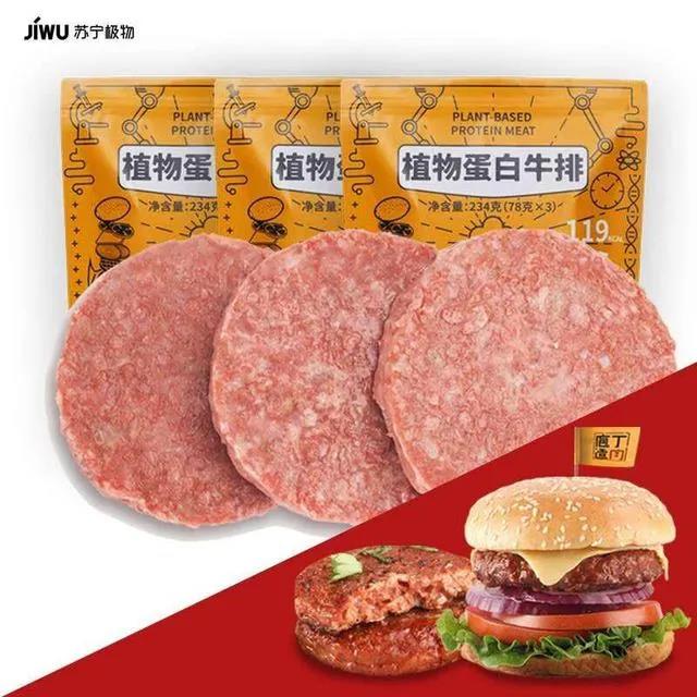 庖丁造肉产品目前在苏宁易购的销量远高于竞品,从线上的用户评价来看,绝大多数用户都非常认可“庖丁造肉”植物蛋白混合肉牛排的口感跟味道。目前,一袋装“植物蛋白牛排”零售价为99元人民币,其净含量为234克,含3块各78克重的“植物蛋白牛排”肉饼。