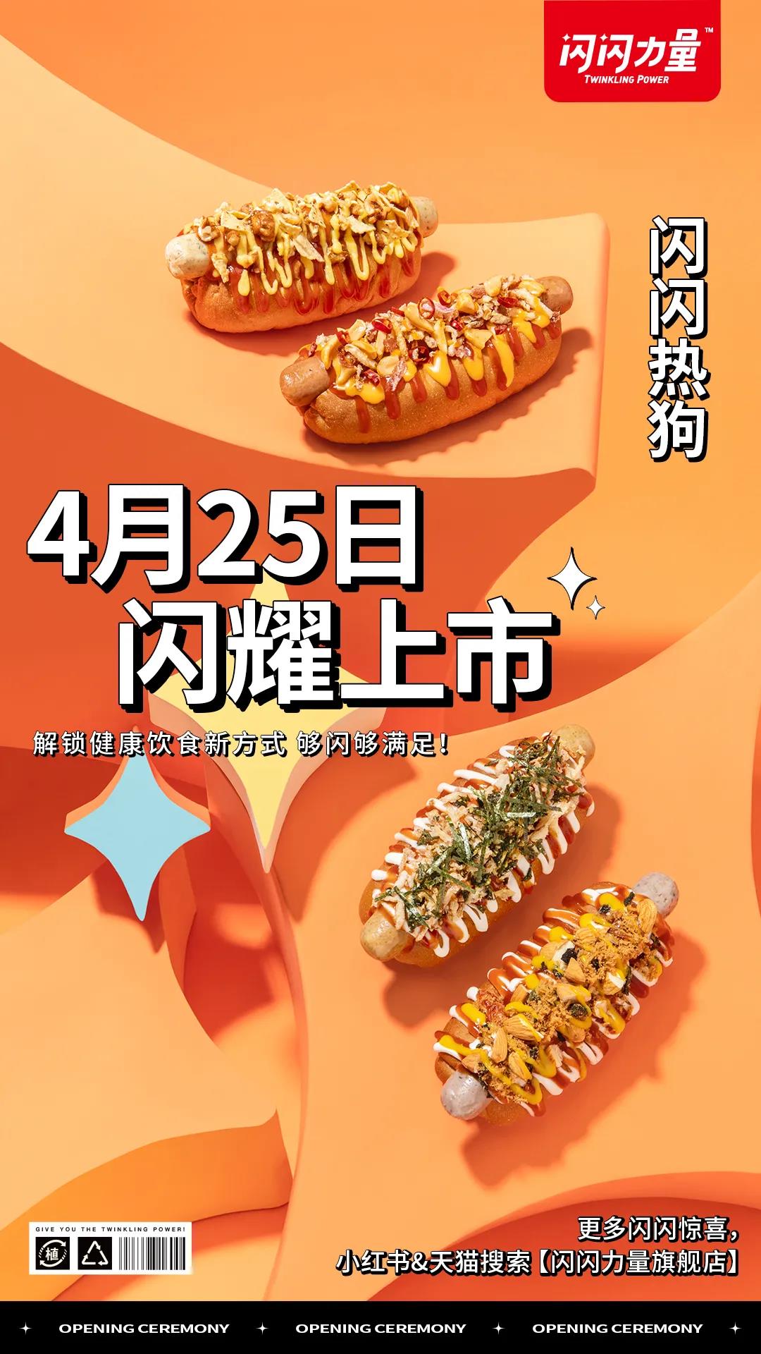 2021年4月25日,植物基食品品牌闪闪力量推出国内第一款植物基常温热狗产品——闪闪热狗,同步在闪闪力量天猫旗舰店开售!