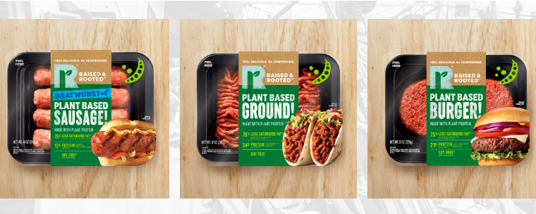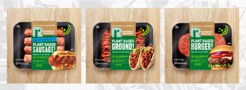 美国泰森食品公司(Tyson Foods)为全球第二大肉业巨头,规模仅次于巴西的JBS。泰森食品旗下的植物肉品牌Raised & Rooted本周以高姿态进军植物基市场,宣布推出三款全新纯植物基产品,包括素汉堡排、仿免治牛肉以及素肉肠,并于全美国逾万家零售店发售。
