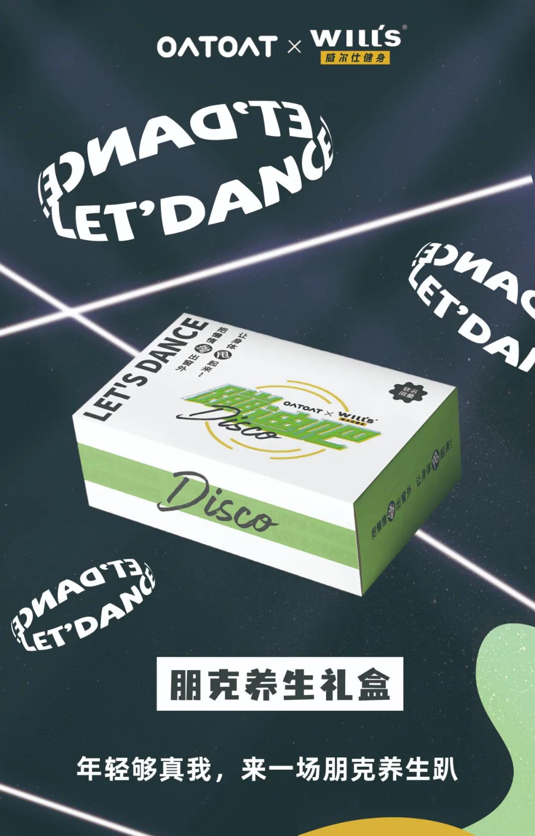 5月22日-5月31日,连锁健身品牌威尔仕联合植物燕麦饮品牌oatoat在北京、上海推出「蹦迪吧」主题团课活动。在上海徐汇苑店,威尔仕放置了供年轻人拍照打卡的艺术装置。在此期间通过威尔仕App成功打卡七次的用户,即可兑换Will’s x oatoat联名「蹦迪吧」礼盒。