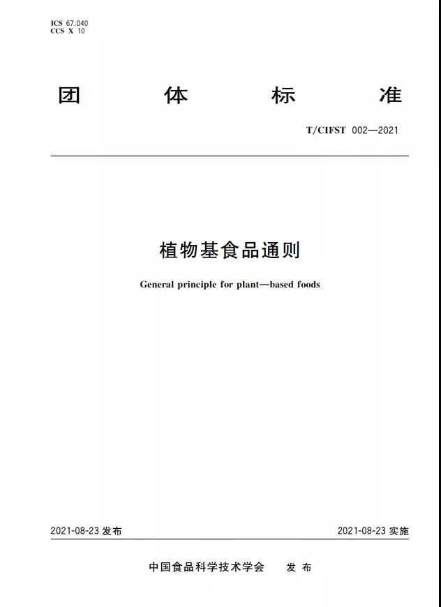 这里与大家分享其中的《植物基食品通则》,更多资讯,请前往中国食品科学技术学会官网:http://www.cifst.org.cn/