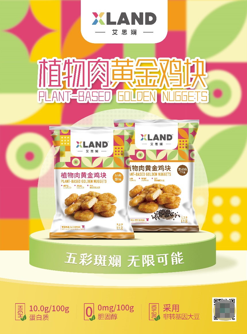 此次艾思斓推出植物肉黄金鸡块(黑椒味)焕新升级,不仅为消费者提供了更多植物肉产品选择,还为广大商家提供了概念菜单和产品解决方案,简单标准化操作利于快速出餐,助力商家提高经营利润点。黄金鸡块,可制作上校鸡块、川香辣子鸡、榴芒鸡块披萨等中西食品。烹饪简便,可随心搭配多样餐饮场景,做开胃前菜、营养正餐、饭后小食……轻松开辟多渠道餐饮空间。深受健康达人、环保族、弹性素食爱好者等消费人群的青睐。